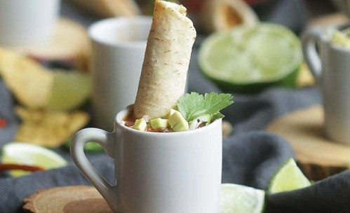 Szukasz pomysłu na efektowną i pyszną przekąskę na imprezę? 🎉 Te mini tortilla shooters podawane w kieliszkach i chrupiące taquitos z kurczakiem i serem to hit każdego spotkania! 🥳👌