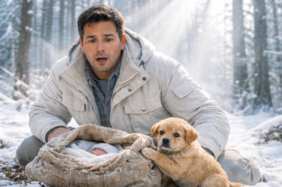 Dziecko cicho zapiszczało — ledwo słyszalnie, ale ten dźwięk wystarczył, by Paweł oprzytomniał. Gwałtownie nabrał powietrza, jakby właśnie wynurzył się z lodowatej wody, i natychmiast uklęknął. W jego głowie nie było już szoku — tylko chłodna, wyćwiczona przez lata służby koncentracja. — Już dobrze… jestem tutaj… — powiedział ochryple, choć wiedział, że niemowlę nie rozumie słów. — Nie jesteś sam. Szczeniak zamilkł. Patrzył na Pawła czujnie, lecz bez wcześniejszej paniki — jakby wyczuł, że ten człowiek nie stanowi zagrożenia. Paweł szybko rozpiął swój gruby, wełniany płaszcz i bez wahania owinął nim dziecko, przyciskając je do piersi. Ciepło własnego ciała było pierwszą rzeczą, jaką mógł mu dać. Jego ruchy były pewne: sprawdził oddech, ostrożnie dotknął maleńkiego