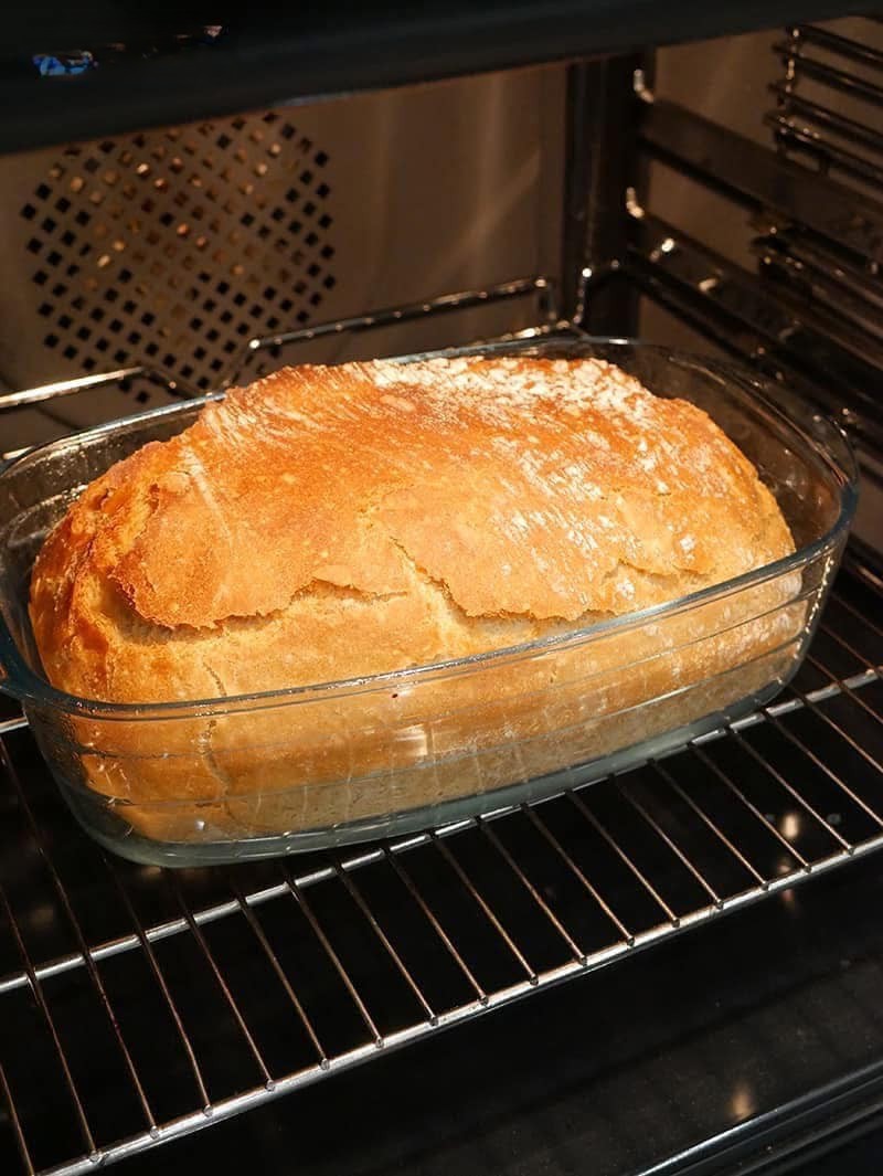 Szybki w przygotowaniu i bardzo smaczny chleb pieczony w naczyniu. Mięciutki w środku z mocno chrupiącą skórką.