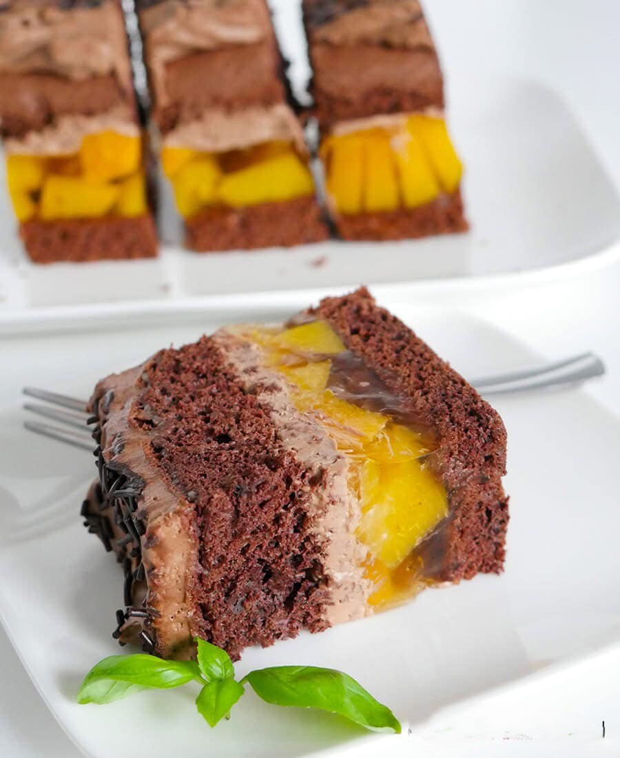 Lekkie, puszyste i delikatne ciasto brzoskwiniowo-czekoladowe. To wyśmienity wypiek, który musicie wypróbować! Połączenie kremu czekoladowego z brzoskwiniami smakuje naprawdę wyśmienicie! Do tego kakaowy i delikatny biszkopt, który idealnie pasuje do pozostałych warstw ciasta.