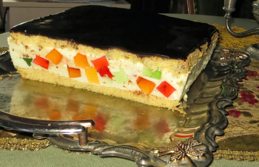 Ciasto jest delikatne jak ptasie mleczko, a czekoladowa polewa wspaniale to podobieństwo podkreśla. Moc kolorów galaretek idealnie wpisuje się w wiosenne klimaty:)Nazwałam je kostką Rubika bo jest tak kolorowe i nieco “geometryczne”, że skojarzenie ze słynną kostką przyszło mi niemal natychmiast na myśl:)