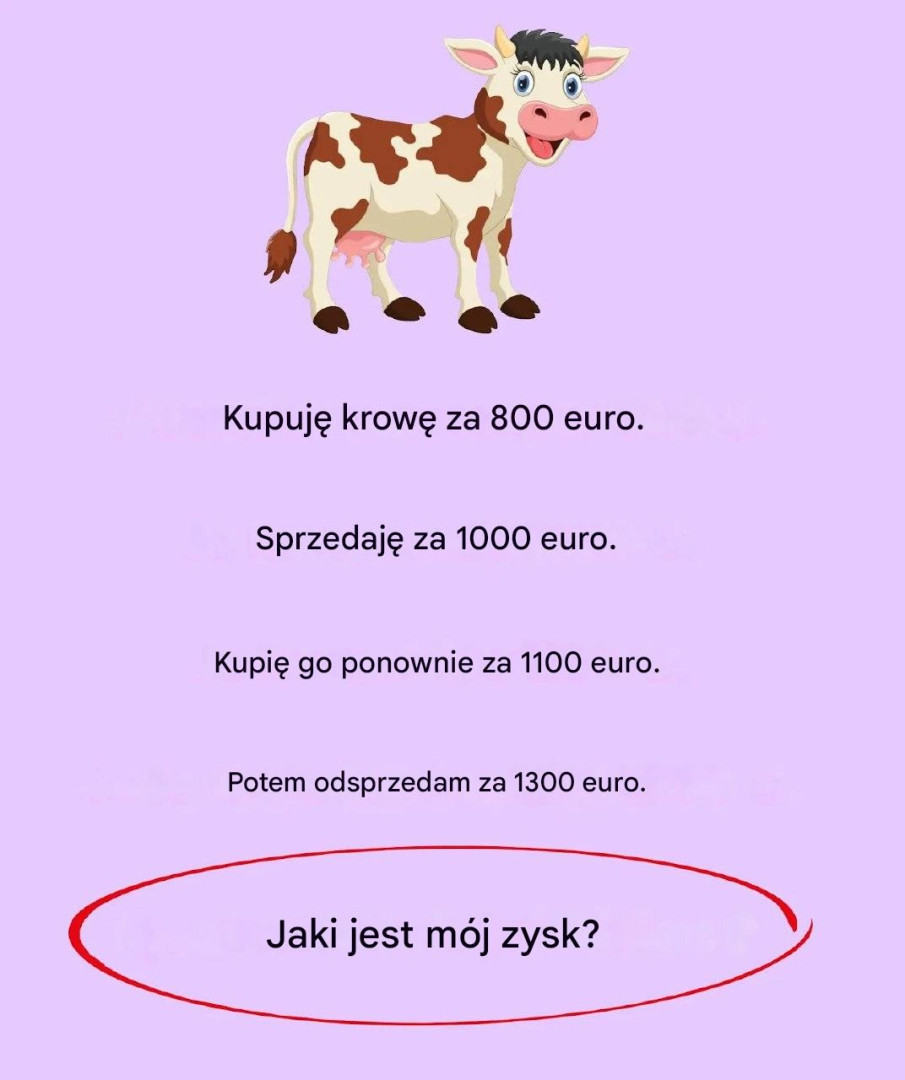 Widziałeś tę zagadkę: krowa zmienia właściciela, sumy pieniędzy dodawane i odejmowane… i w końcu twój umysł się gubi. Myślisz, że masz rozwiązanie, ale szczegół sieje wątpliwości. A co, gdyby zamiast zaufać intuicji, zastosować naprawdę niezawodną metodę? Uwaga, spoiler: nie musisz być matematykiem, wystarczy ustawić kroki tak, jak ustawia się produkty w supermarkecie…