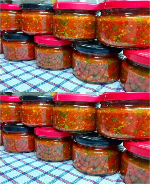 Gotuję tę adjika bardzo szybko. Jest to świetna opcja na zbiory na zimę. Według tego przepisu adjika jest umiarkowanie ostra i niezwykle smaczna.