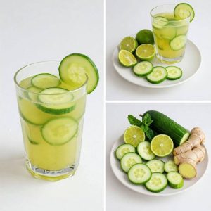 O băutură răcoritoare de vară: O băutură naturală din castravete, lămâie, ghimbir și mentă.