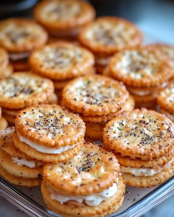 Te kanapki imprezowe Ritz Cracker Party Sandwiches to idealna przystawka na każde spotkanie. Są proste w przygotowaniu i w piekarniku zamieniają się w ciepłe, maślane i serowe kąski o wyrazistym, chrupiącym smaku. Ten przepis z pewnością przypadnie do gustu wszystkim gościom i sprawi, że będą o niego pytać!
