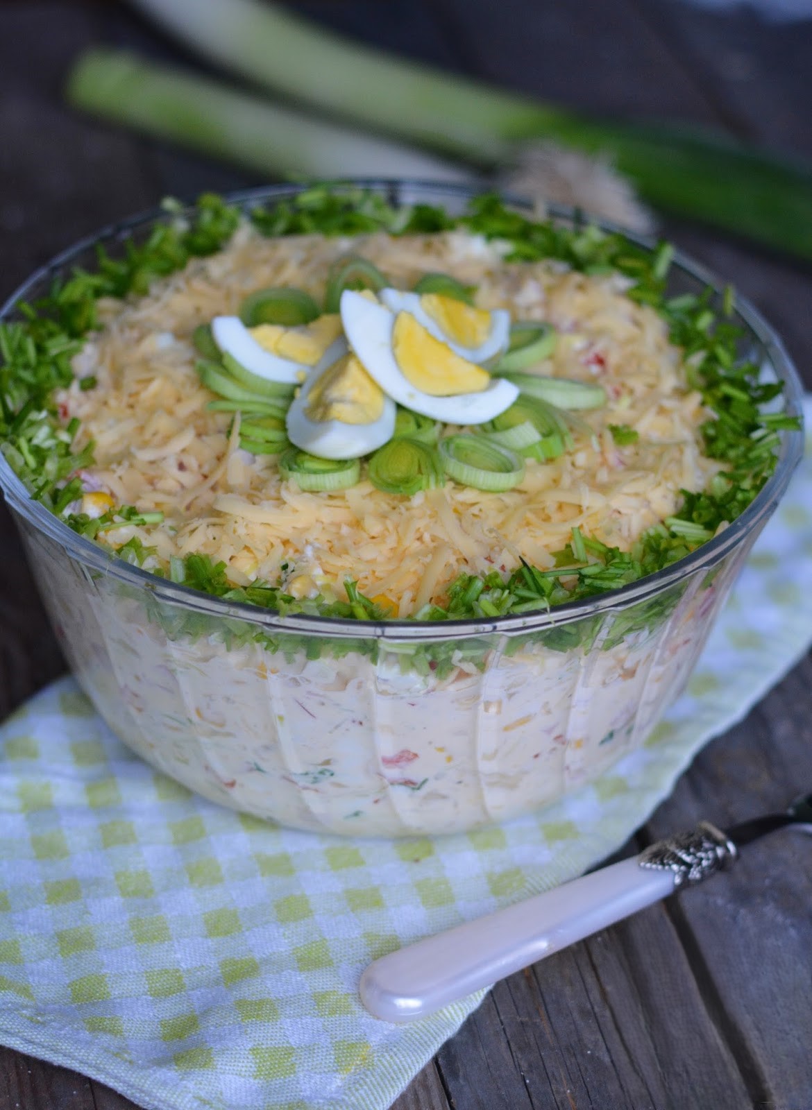 Szybka w przygotowaniu sałatka, która z pewnością sprawdzi się na każdej imprezie i smakiem zachwyci uczestników zabawy. Składniki: