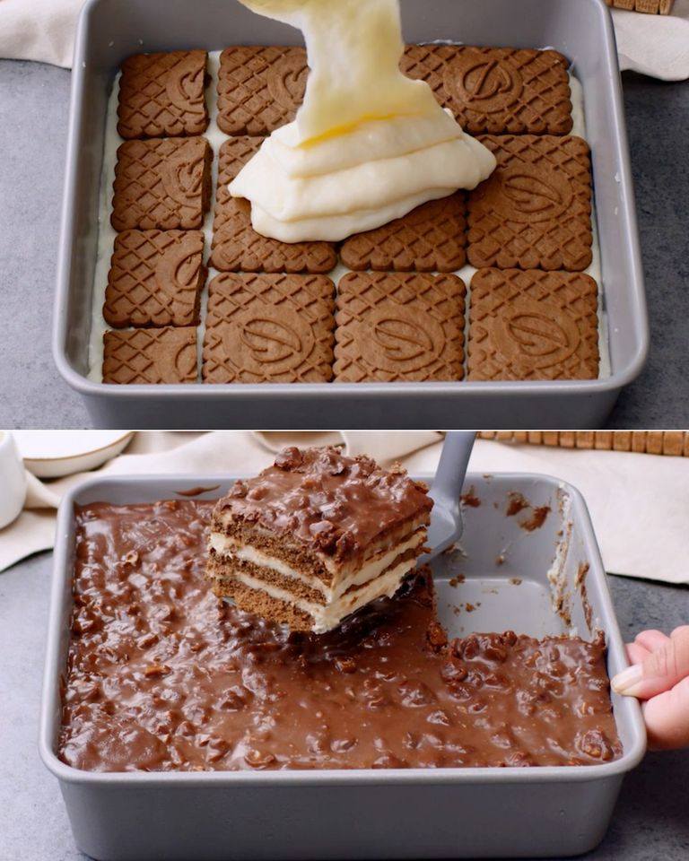 Ciasto biszkoptowe ze śmietaną i czekoladą: pyszne i bez gotowania!