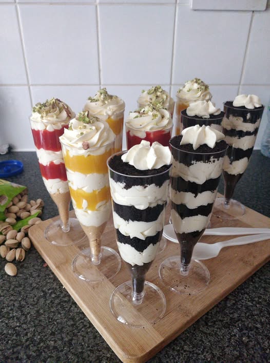 Kolorowe deserki, które nie tylko pięknie wyglądają, ale również rewelacyjnie smakują. Doskonale sprawdzą się na każdą okazję. Składniki 500 ml śmietany kremówki 250 g mascarpone ciasteczka oreo herbatniki maślane truskawki brzoskwinie