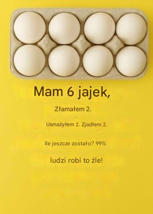 Prosta, a zarazem potężna zagadka, która ujawnia, jak działa nasz umysł Wprowadzenie W mediach społecznościowych pojawiła się zagadka, która, choć pozornie prosta, wprawiła w osłupienie miliony ludzi. Brzmi ona następująco: „Mam 6 jajek. Rozbiłem 2. Usmażyłem 2. Zjadłem 2. Ile jajek mi zostało?”