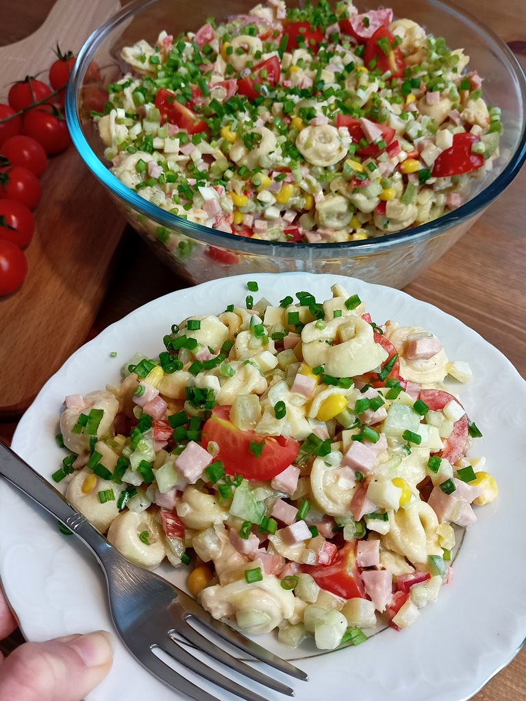 Jedno opakowanie tortellini mam zawsze w domu, bo można z nich przygotować szybki posiłek. Ta sałatka mojej rodzinie szczególnie przypadła do gustu, więc często przyrządzam ją na spotkania w gronie bliskich lub tak po prostu, gdy znudzą się kanapki. Gwarantuję – zawartość miski bardzo szybko znika, bo sałatka jest po prostu pyszna 😊😉.