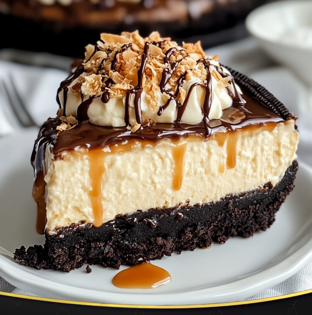 Jeśli lubisz sernikowe desery z głębokim smakiem karmelu i kokosa , to Samoa Cheesecake to właśnie dla Ciebie! To bogata, kremowa wypieka łącząca w sobie wszystkie Twoje ulubione smaki: czekoladowy spód, puszystą masę serową i chrupiące ciasteczka Samoa na wierzchu. Idealne na urodziny, wigilię czy każdą okazję, kiedy chcesz się naprawdę rozpieszyć.
