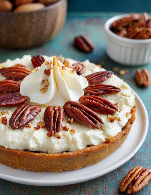 Rozkoszuj się idealnym połączeniem dwóch klasycznych deserów dzięki temu pysznemu sernikowi Pecan Pie. Łącząc bogatą i kremową dobroć sernika ze słodkim i orzechowym smakiem ciasta z orzechami pekan, ten deser to pyszna uczta, która zaimponuje Twojej rodzinie i przyjaciołom. Choć dokładne pochodzenie tego przepisu nie jest znane, połączenie orzechów pekan i sernika tworzy harmonijną symfonię smaków, która będzie hitem na każdym spotkaniu i wyjątkowej okazji.