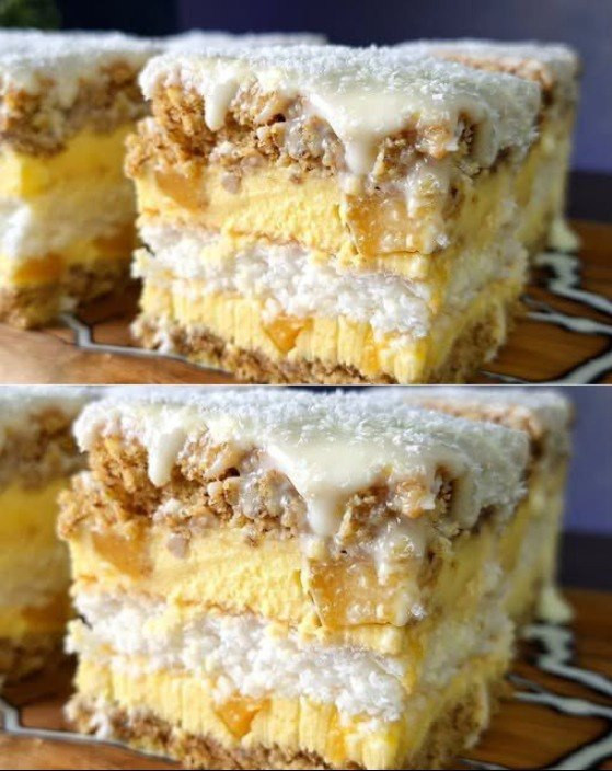 To oszałamiające ciasto warstwowe łączy w sobie orzechową głębię orzechów włoskich, tropikalny smak kokosa i owocową słodycz brzoskwiń, tworząc piękny i rozpieszczający deser. Z warstwami orzechowych i kokosowych biszkoptów, wypełnionych kremowym nadzieniem brzoskwiniowym i zwieńczonych przepyszną białą polewą czekoladową, to ciasto jest hitem, który idealnie nadaje się na specjalne okazje lub jako luksusowa uczta. Postępuj zgodnie z tymi szczegółowymi krokami, aby stworzyć to imponujące warstwowe ciasto orzechowe, kokosowe i brzoskwiniowe!