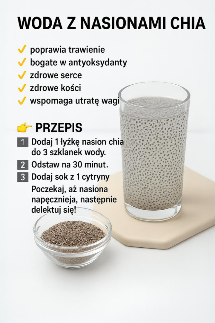 Czy szukasz prostego napoju, który nie tylko ugasi pragnienie, ale też dostarczy Twojemu organizmowi mnóstwo cennych składników odżywczych? Woda z nasionami chia to lekki i zdrowy wybór, pełen mocy i naturalnych właściwości. ✨