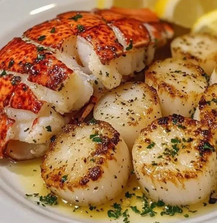 Imagine the scent of garlic sizzling in butter, followed by the delicate sizzle of fresh scallops and lobster tails as they hit the pan. It’s rich, elegant, and yet incredibly simple. This dish brings together two premium ingredients — sweet, tender lobster meat and perfectly seared scallops — coated in a buttery, garlicky sauce with just a kiss of lemon and herbs.